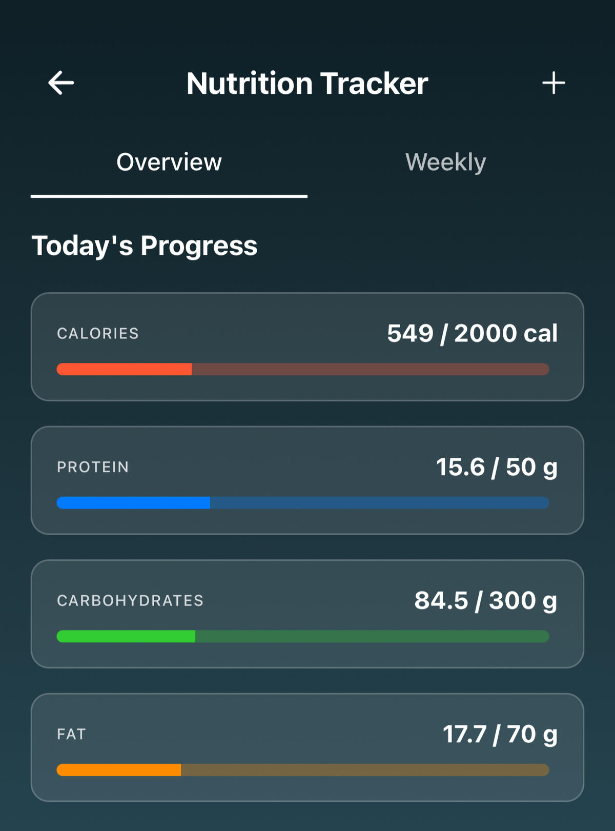 User-generated content (e.g., food entries, exercise logs, etc.) is the sole responsibility of the users who provide it. We do not verify or guarantee the accuracy or reliability of user-generated content.